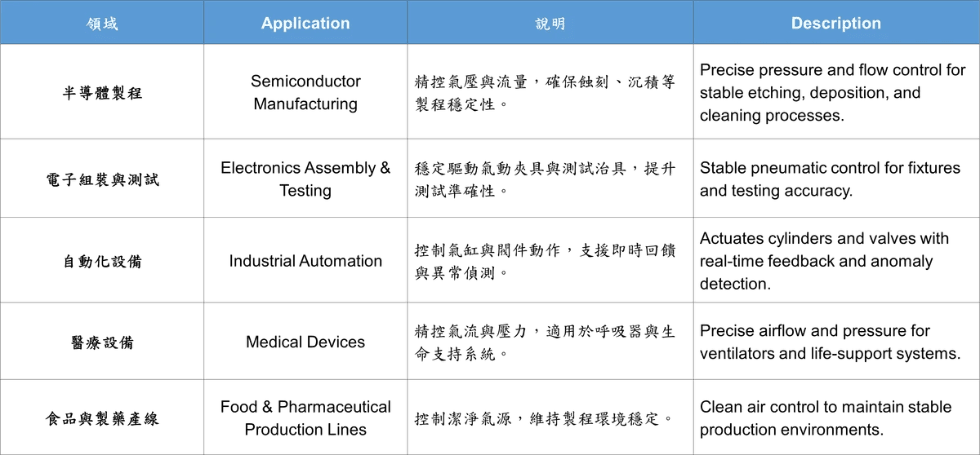 穩定壓力搭配靈敏流量反應,支援高精度製程與關鍵環境需求。